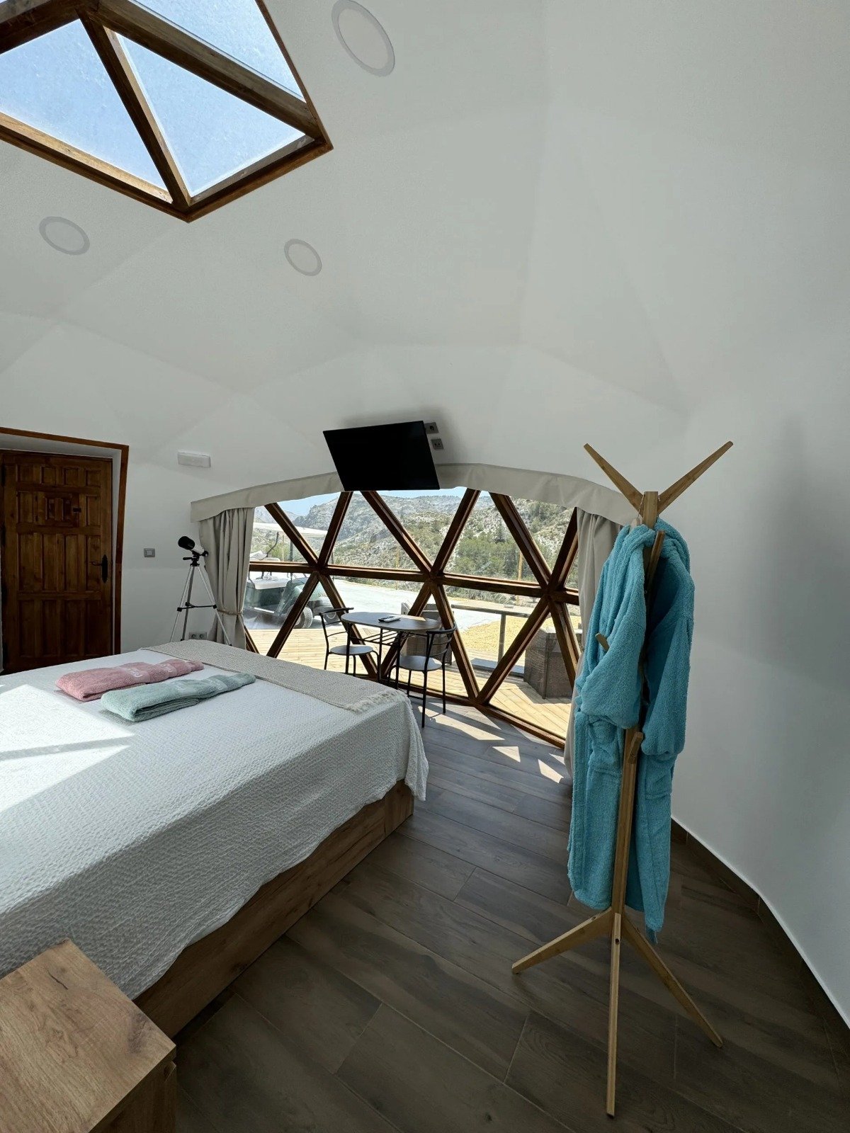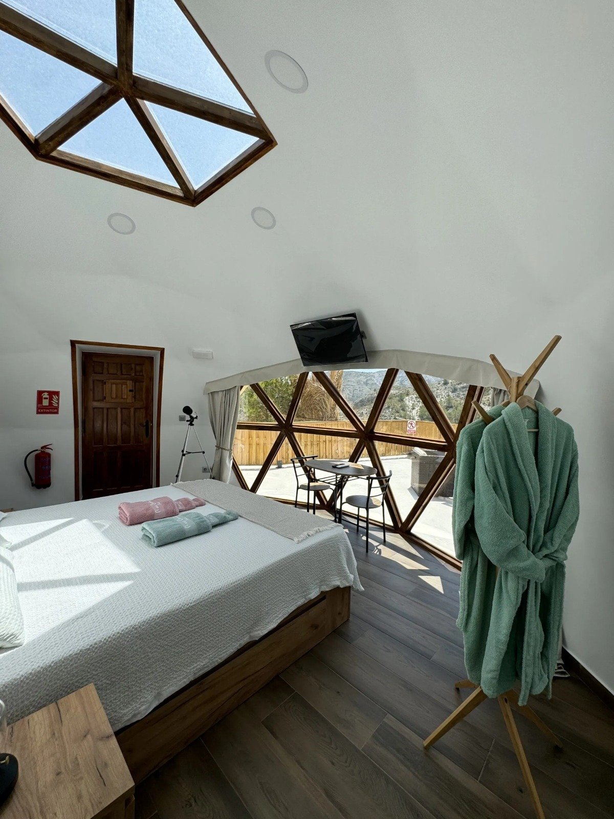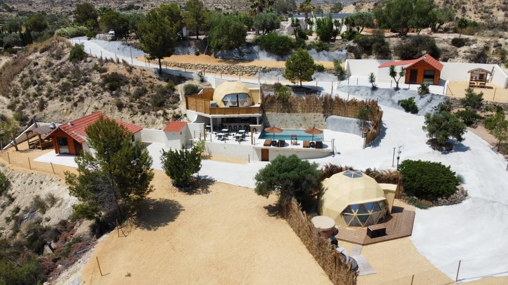 Proyecto de alojamiento exclusivo compuesto por cúpulas geodésicas de diseño, concebidas para ofrecer una experiencia única de confort en plena naturaleza. Los espacios interiores, luminosos y acogedores, se abren al paisaje mediante grandes ventanales y claraboyas, creando una conexión directa con el entorno.