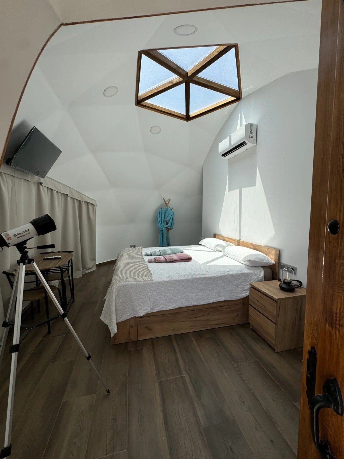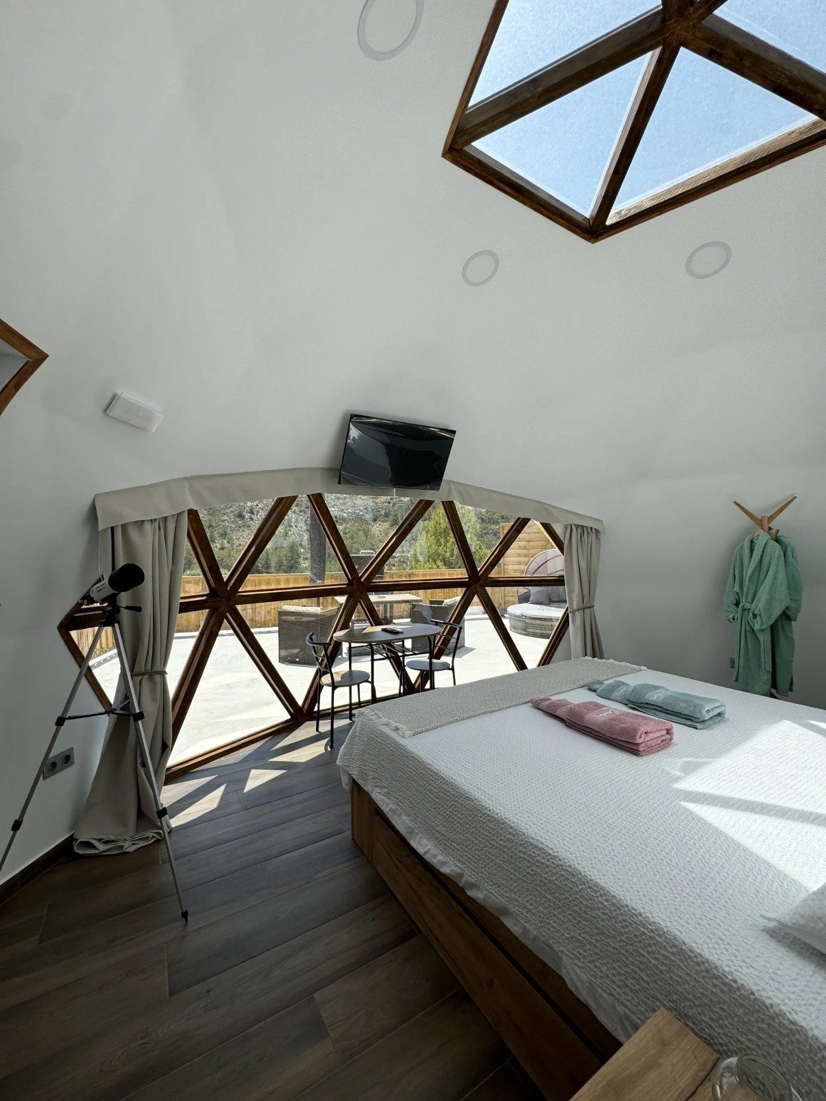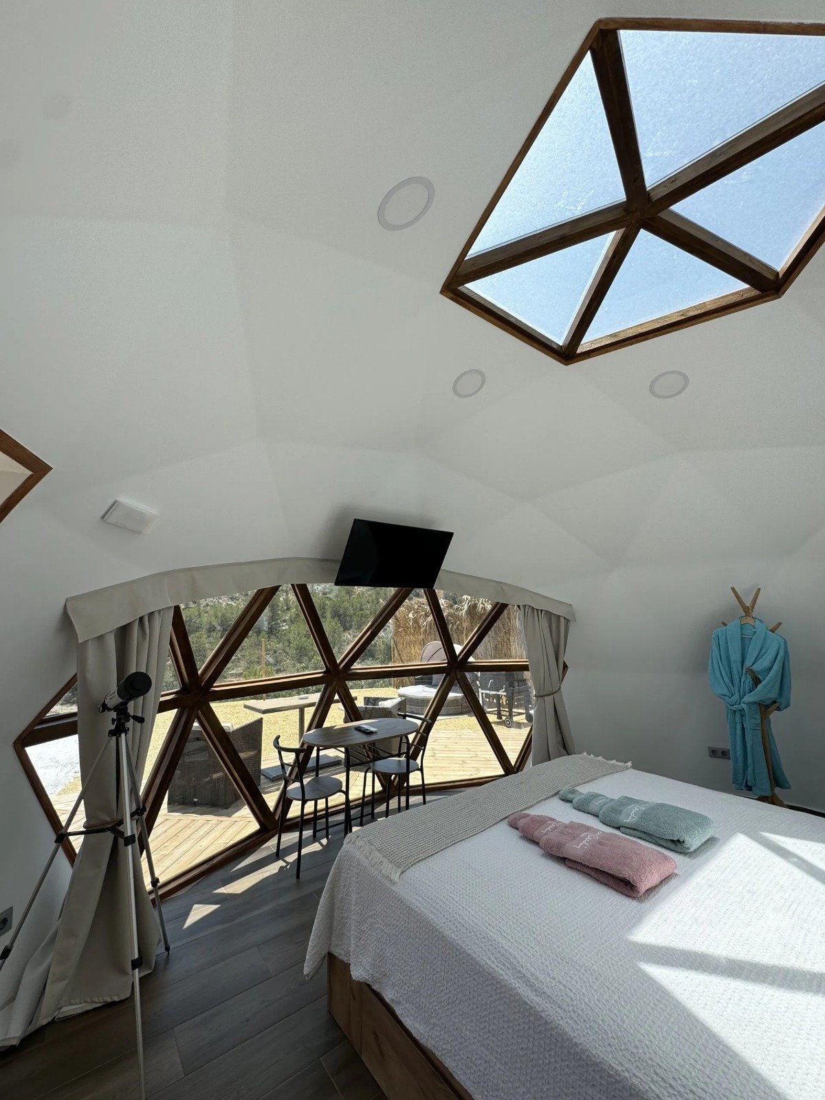 Proyecto de alojamiento exclusivo compuesto por cúpulas geodésicas de diseño, concebidas para ofrecer una experiencia única de confort en plena naturaleza. Los espacios interiores, luminosos y acogedores, se abren al paisaje mediante grandes ventanales y claraboyas, creando una conexión directa con el entorno.